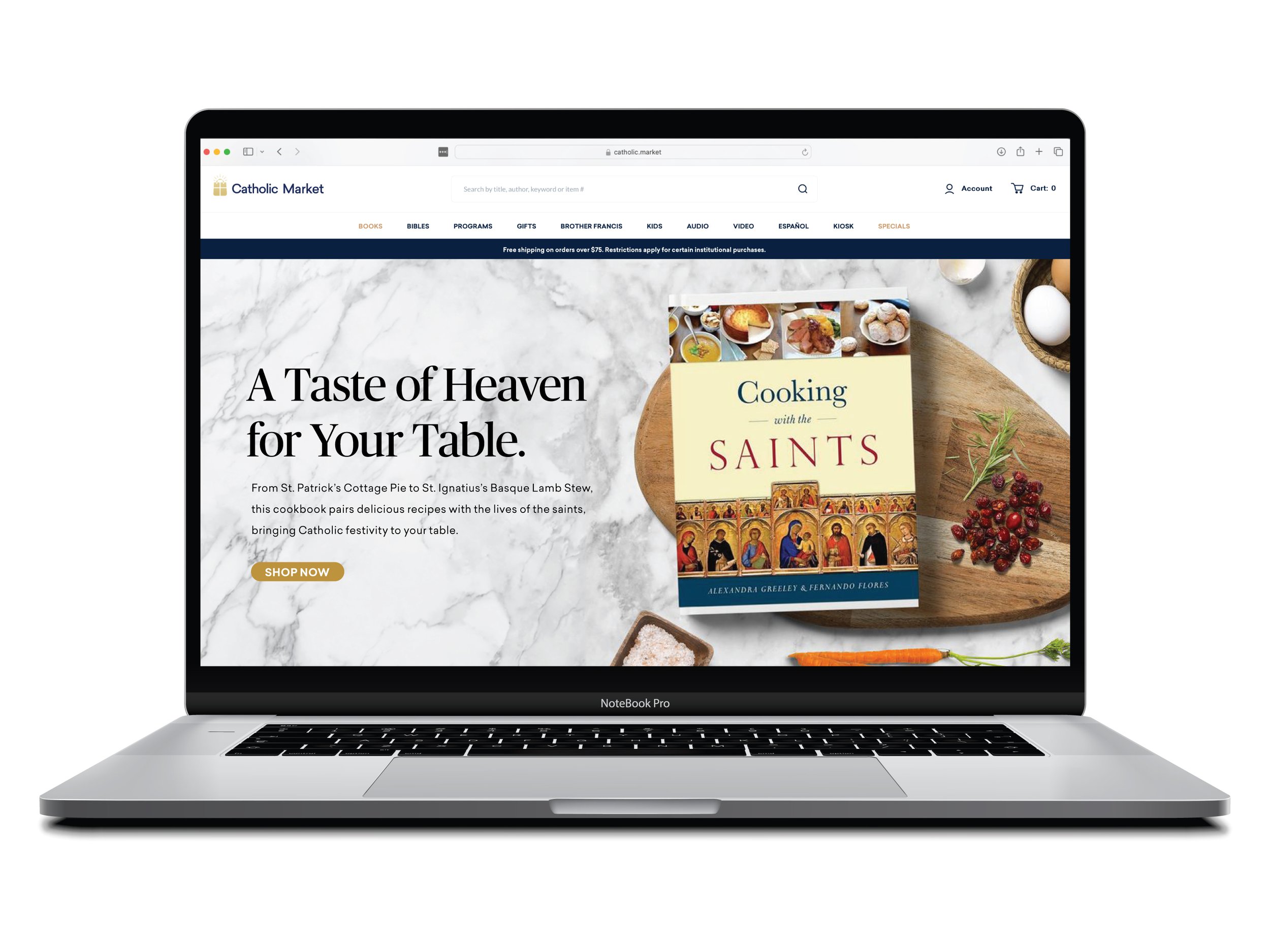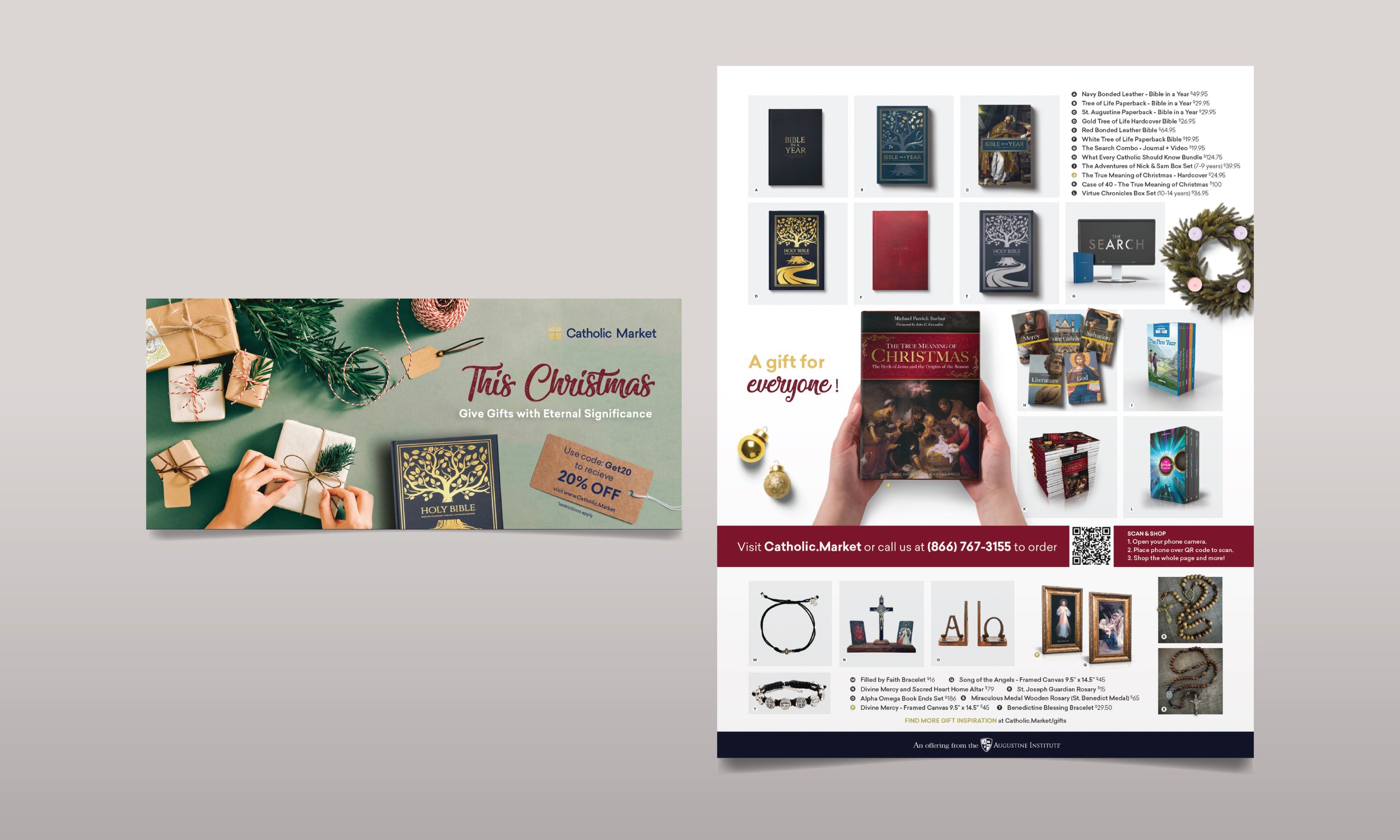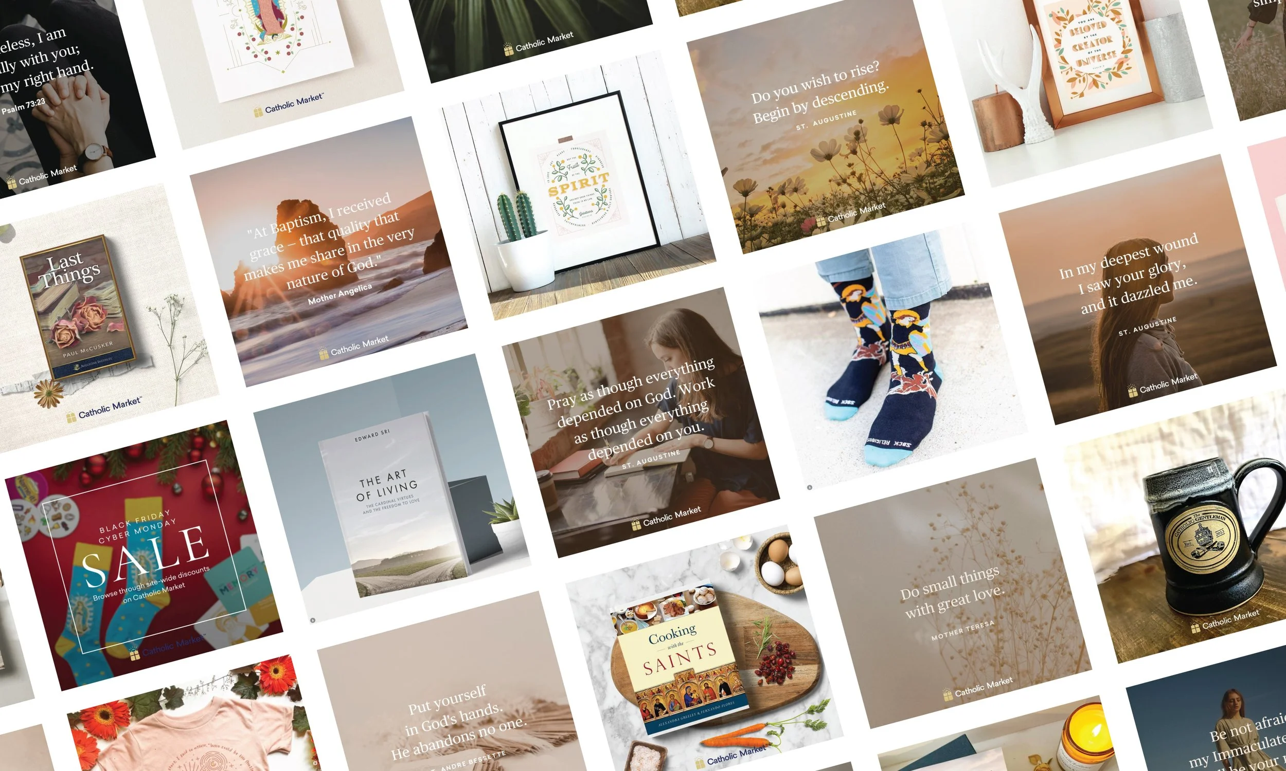 Catholic Market was created as a curated online marketplace connecting Catholic creators, publishers, and artisans with a global audience. The opportunity was to build more than an e-commerce site. The brand needed to signal trust, quality, and cohesion across a diverse range of vendors and products — from books and sacramentals to home goods and gifts.